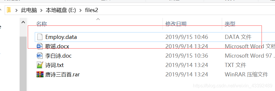 import java.io.File;public class test100 {public static void main(String[] args){File file=new File("e:/files2/Employ.data");Employeee emp=new Employeee();emp.setName( "我是谁" );emp.setAge( 45 );emp.setSex( "男" );FileManagerChar.javaSer( emp,file );}