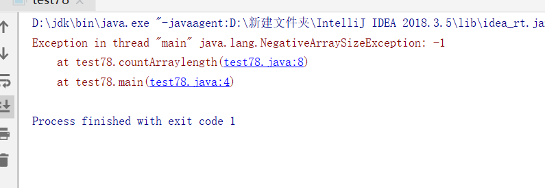 public class test78 {public static void main(String[] args) {countArraylength( -1 );}public static int countArraylength(int length) {int[] nums = new int[length];return nums.length;}