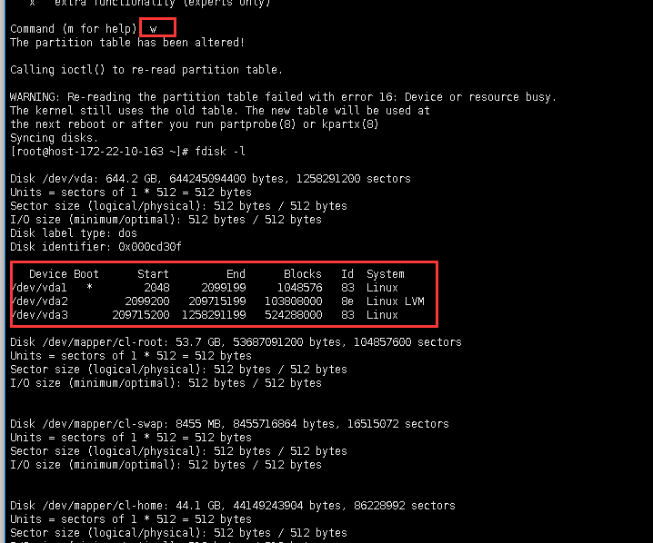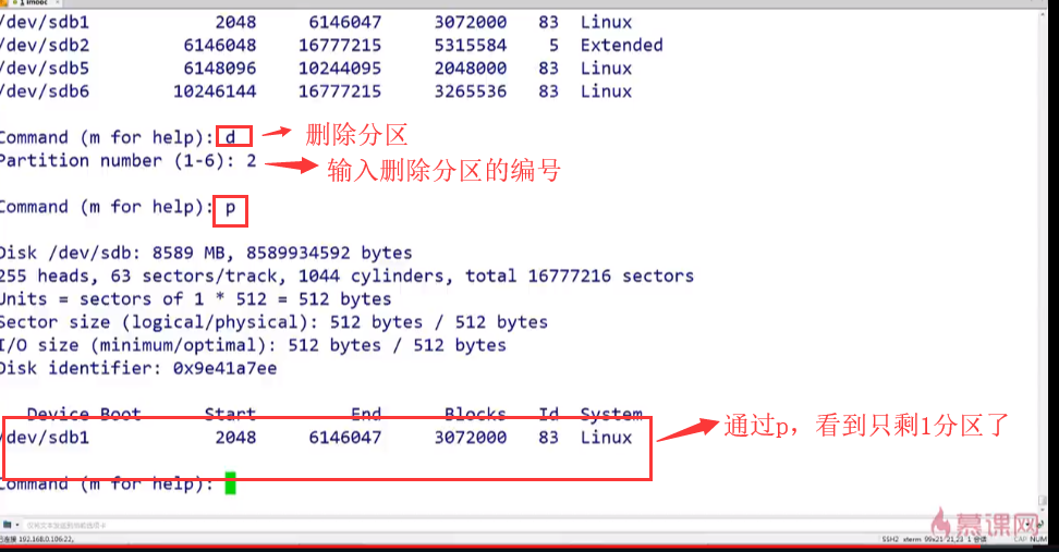 我们有时候可能发现自己的分区不合理,需要重新规划分区,那就需要删除分区,命令截图如下: