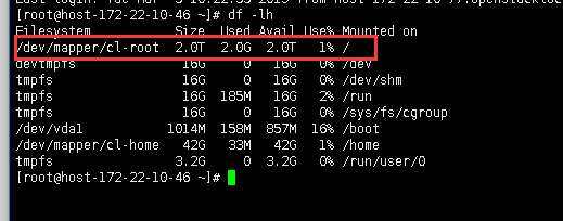 9 lvextend -l+100%FREE /dev/mapper/cl-root --根目录逻辑卷扩容
