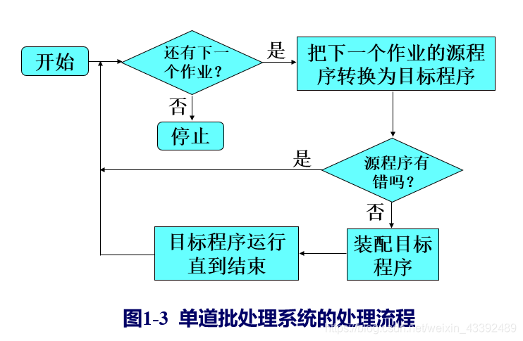 在内存中仅有一道程序运行,即监督程序每次从磁带上只调入一道程序进入内存,当该程序完成或发生异常情况时,才换入其后继程序进入内存运行
