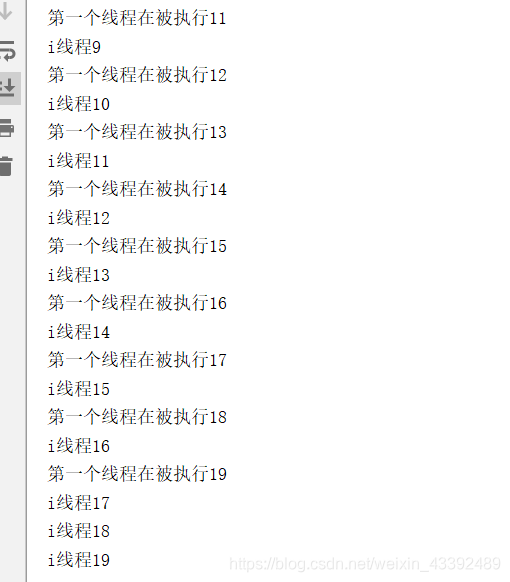 class Xc41 extends Thread {public void run(){for (int i=0;i<20;i++){System.out.println("第一个线程在被执行"+i);}}
