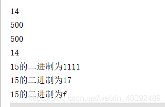 public class test22 {public static void main(String[] args){int num=5;Integer obj1=new Integer(num);System.out.println("obj1的值为"+obj1);Integer obj2=100;System.out.println("obj2的值为"+obj2);Integer obj3=new Integer("-789");System.out.println("obj3的值为"+obj3);System.out.println(Integer.BYTES);System.out.println(Integer.MAX_VALUE);System.out.println(Integer.MIN_VALUE);System.out.println(Integer.SIZE);//比较大小System.out.println(obj2.compareTo(100));System.out.println(obj2.compareTo(102));System.out.println(obj2.compareTo(10));//返回值类型int num1=obj2.intValue();System.out.println(num1);//将一个字符串转换为int数据返回int str1=Integer.parseInt("125");System.out.println(str1+12);//表示1110在二进制的时候十进制是多少int str2=Integer.parseInt("1110",2);System.out.println(str2);//valueof方法获取一个integer实例Integer obj4=Integer.valueOf(500);System.out.println(obj4.intValue());System.out.println(Integer.valueOf("500").intValue());System.out.println(Integer.valueOf("1110",2).intValue());//转换为二进制,八进制,十六进制System.out.println("15的二进制为"+Integer.toBinaryString(15));System.out.println("15的二进制为"+Integer.toOctalString(15));System.out.println("15的二进制为"+Integer.toHexString(15));}