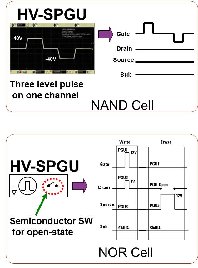 面对如此错综复杂的考量,正确的方法,是使用Keysight HV-SPGU module in B1500A(HighVoltage Semiconductor Pulse Generator Unit),这是基于Keysight半导体参数分析仪(也就是Tracer)B1500A的高压脉冲产生单元,它可以产生± 40V的电压脉冲,用于memory cell 的disturb test。