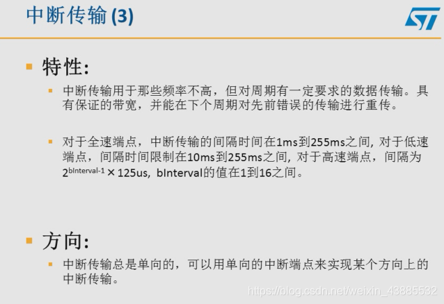 中断传输应用如主机定期间隔送鼠标读取当前的输入信息,或键盘的输入键值