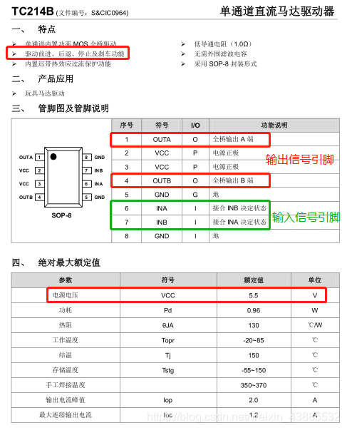 潘多拉开发板中通过TC214B电机驱动芯片驱动板载直流电机,因此需要先了解TC214B芯片的主要功能及其使用方法。