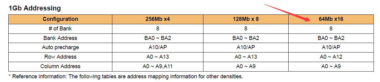 从地址线可以算出,一个芯片上有13个行地址线,10个列地址线,3个bank线,一次能读取16位。