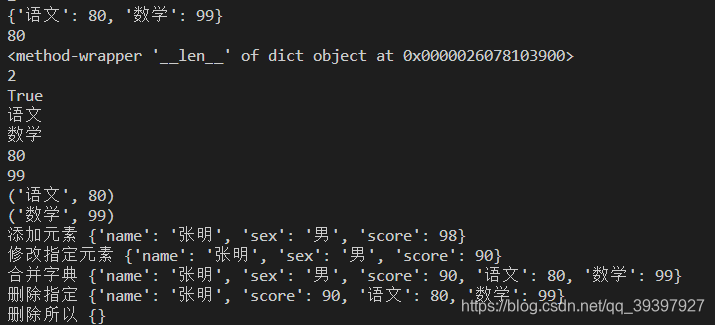 删除字典 pop(指定元素的关键字) 删除所有元素clear() del语句