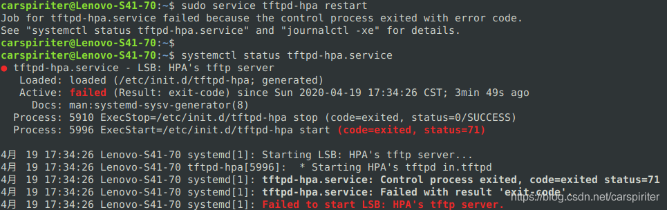 - 原因:从Log可以看到,是在执行in.tftpd文件的时候出错退出的。而in.tftpd在两个地方都有设置执行,故而冲突。