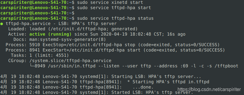 转自:ubuntu16.04安装配置tftp服务_carspiriter的博客-CSDN博客_ubuntu安装tftp