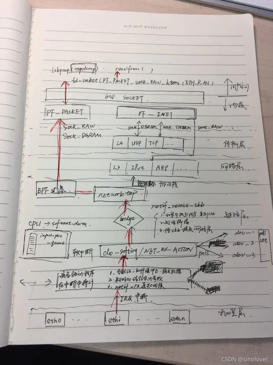 接下来,对照上图分层解释报文从网卡最终到达用户空间的处理流程: