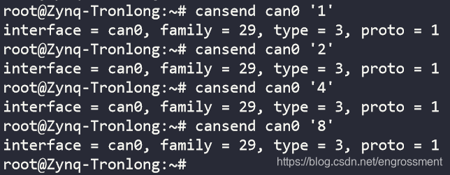 往指定接口发送数据。这里与 candump 程序的结合使用。