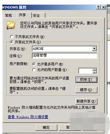 首先右击c:\windows 文件夹选择共享标签 取消所有的共享