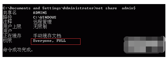 然后再运行一遍 net share admin$ 查看admin$的共享属性