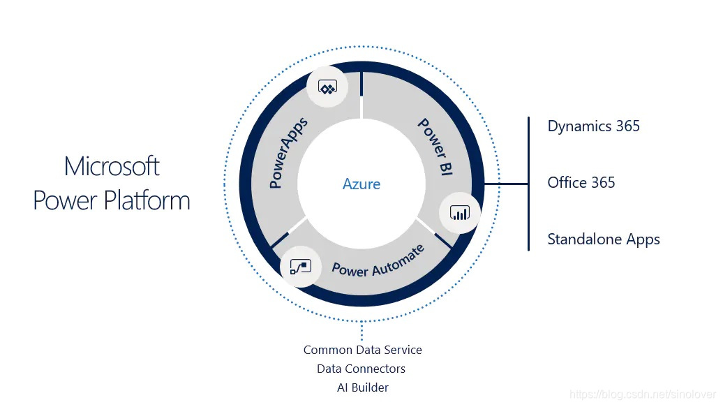Power Platform 支持和扩展 Microsoft 365、Dynamics 365、Azure 及第三方服务和应用程序。