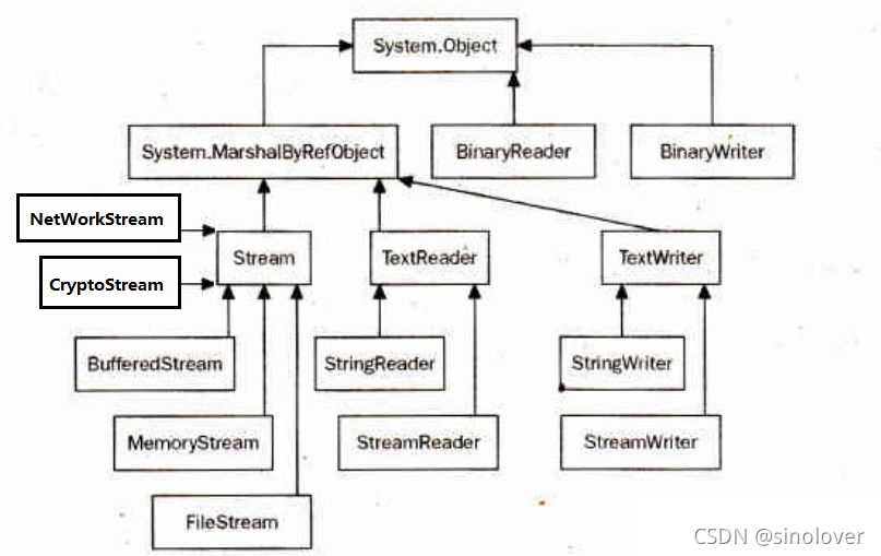 继承关系如下图(除NetWorkStream CryptoStream外,其他均在System.IO下):