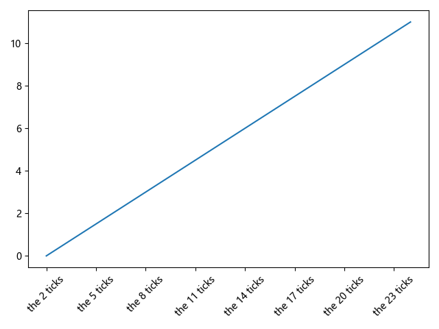 plt.xticks(range(2, 26, 3), ('the {} ticks'.format(i) for i in range(2, 26, 3)), rotation=45)plt.show()