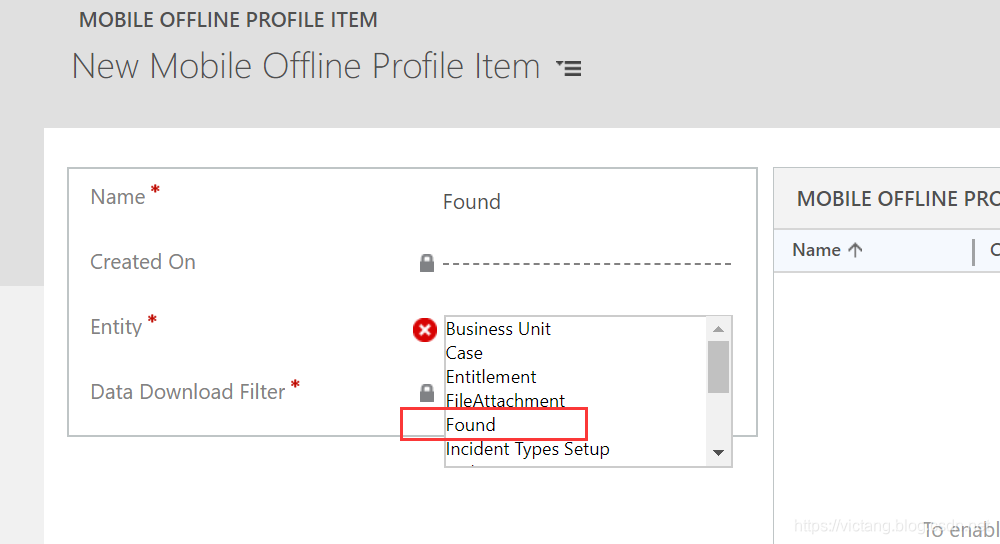 中间这块的配置如下,如果你没有在第一步的实体中启用离线则这一步的Entity的下拉框中就看不到了,这里不仅配置了实体,也会在页面右侧配置和这个实体相关联的实体是否在离线模式下可见