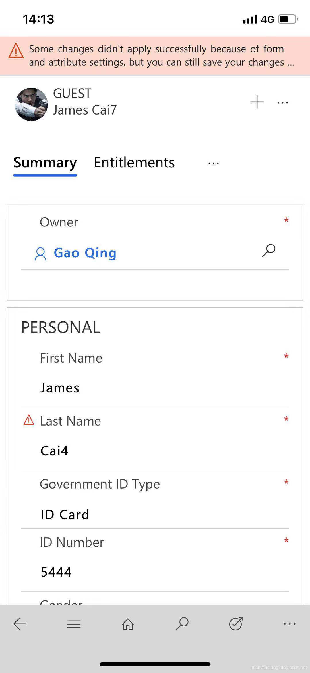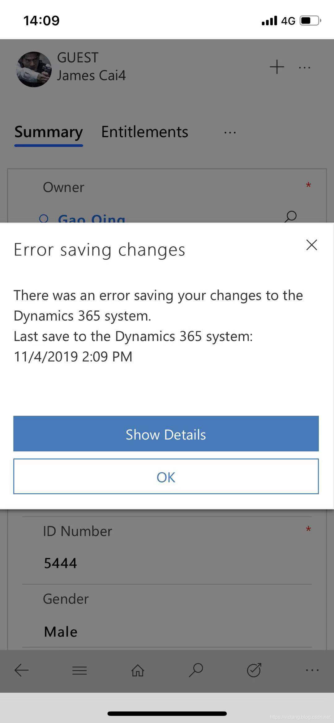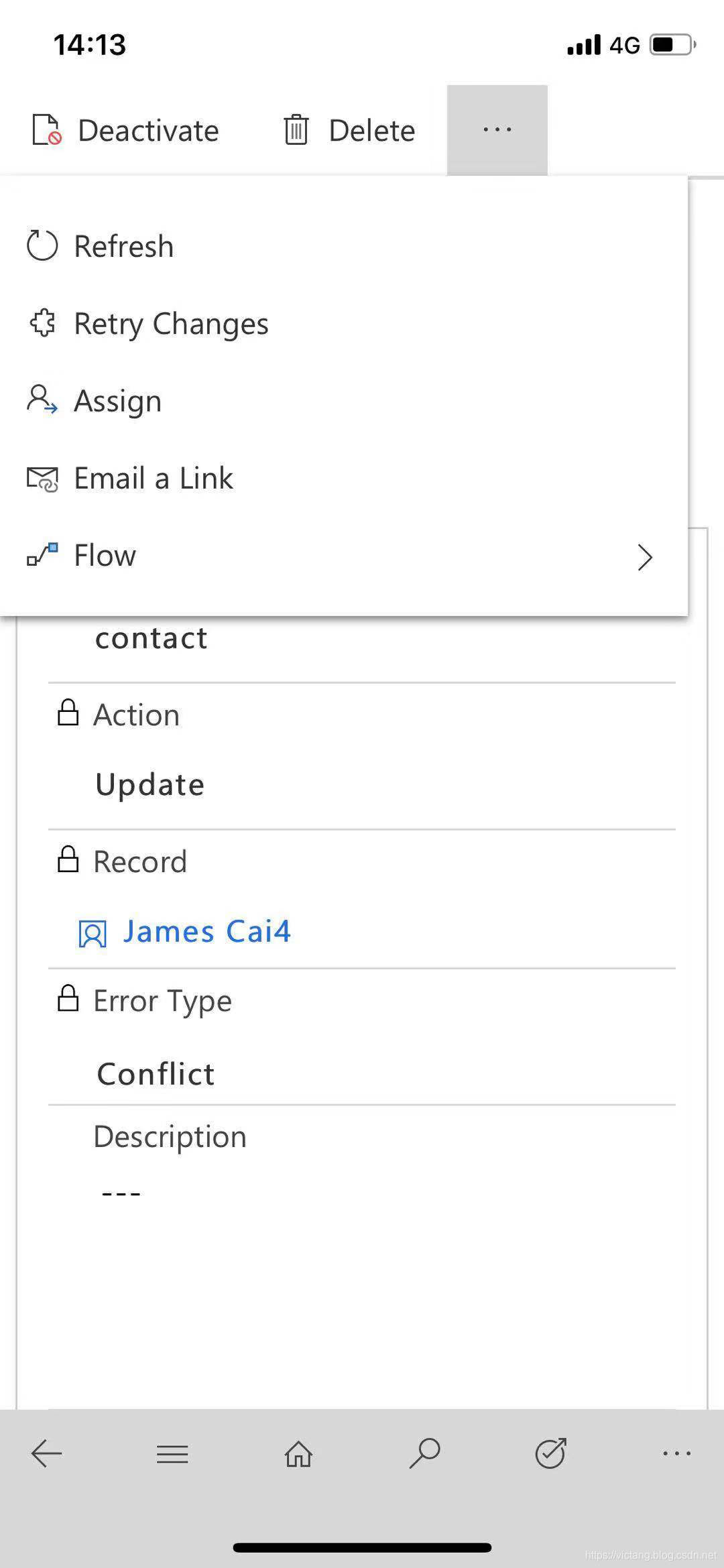 下面是启用数据冲突检测后的示意图,当手机端联网reconnect后会弹出提示,sync数据时出错并且告诉了你详细的错误信息,当然你也可以选择Retry Changes把你手机端的更改记录覆盖Server端