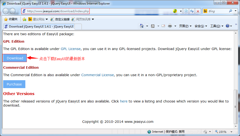 EasyUI官方下载地址:http://www.jeasyui.com/download/index.php,目前最新的版本是:jQuery EasyUI 1.4.1