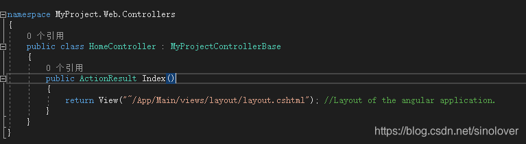 - 更改 MyProject.Web/Views/Shared/_Layout.cshtml 页面相关源码