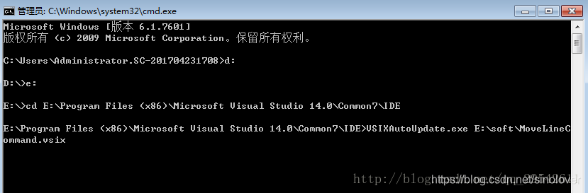 然后将你 要安装的vsix文件拖到dos窗口里,这样就有vsix文件的路径了。