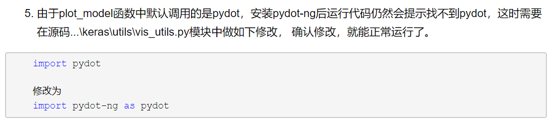 【注意】:需要注意的是pydot与pydot-ng的区别,pydot是对应python2的旧版本,python-ng是兼容python2与python3的新版本,刚开始就安装的是pydot,可视化的时候依然报错:Failed to import pydot. You must install pydot and graphviz for `pydotprint`。
