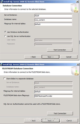 use [WSS_Content] if not exists (select groupname from sysfilegroups where groupname=N'RBSFilestreamProvider') alter database [WSS_Content] add filegroup RBSFilestreamProvider contains filestream use [WSS_Content] alter database [WSS_Content] add file (name = RBSFilestreamFile, filename = 'c:\blobstore') to filegroup RBSFilestreamProvider - 安装RBS:可通过直接执行RBS_X64.msi文件来安装程序,官方下载Sql Server2013 RBS.msi