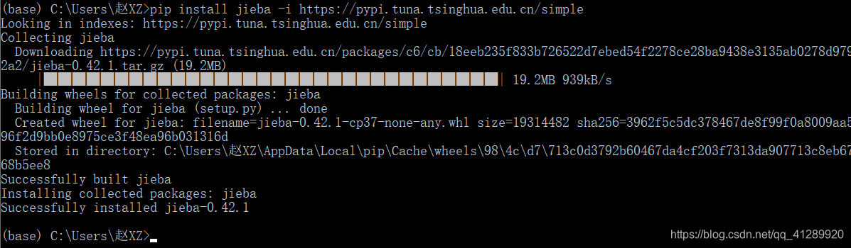 输入:pip install jieba -i https://pypi.tuna.tsinghua.edu.cn/simple