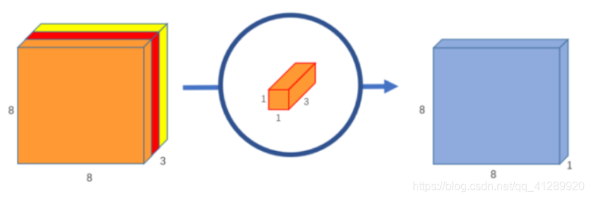 图7:逐点卷积,将一个3通道的图像转换为一个1通道的图像