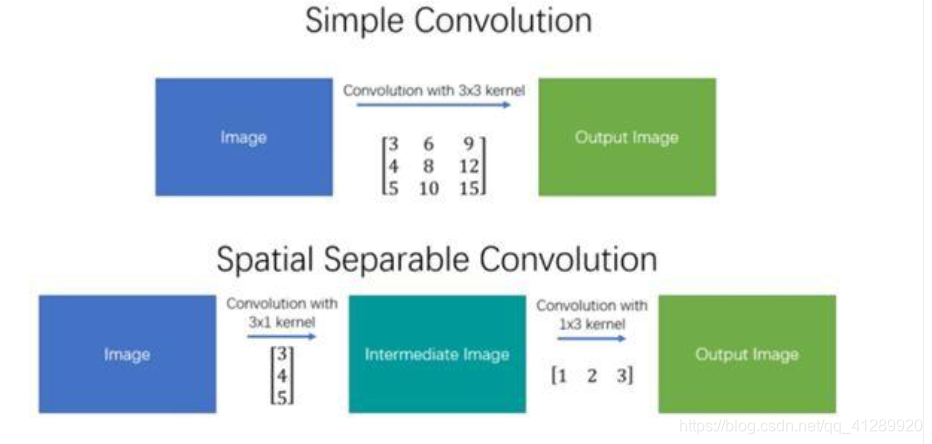 空间可分离卷积(spatial separable convolutions)深度可分离卷积(depthwise separable convolutions)空间可分离卷积
