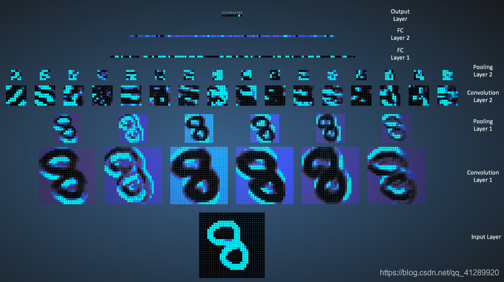 我们在下图中可以看到神经网络对于输入数字“8”的具体操作细节。请注意,图18中并未单独显示ReLU操作。