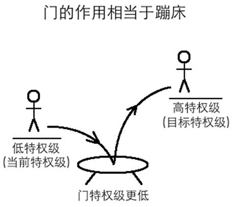 实际上,门也是按照这个蹦床原理实现的,我们把“门”分成门槛和门框来比喻: