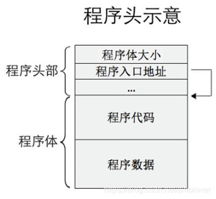 在程序中,程序头(也就是文件头)是用来描述程序的布局等信息,它属于信息的信息,也就是元数据。包含程序头的程序文件示意如图: