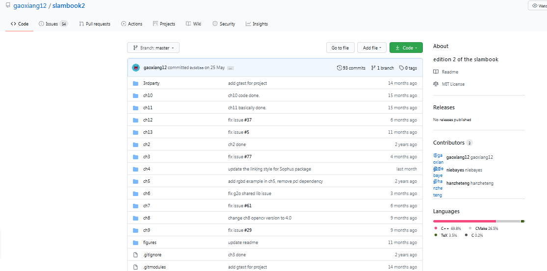 最近在学习高翔博士的《视觉SLAM十四讲》(第二版),算是初学本书,配套资源还算蛮丰富的,有代码(第一版和第二版都有),B站上也有高翔博士对第一版录制的讲解视频,真的是很贴心。