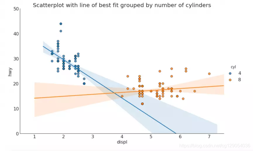 3. Scatter plot with linear regression line of best fit(散点图与最佳线性拟合回归线)