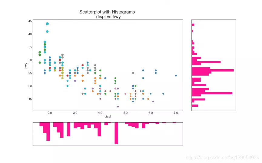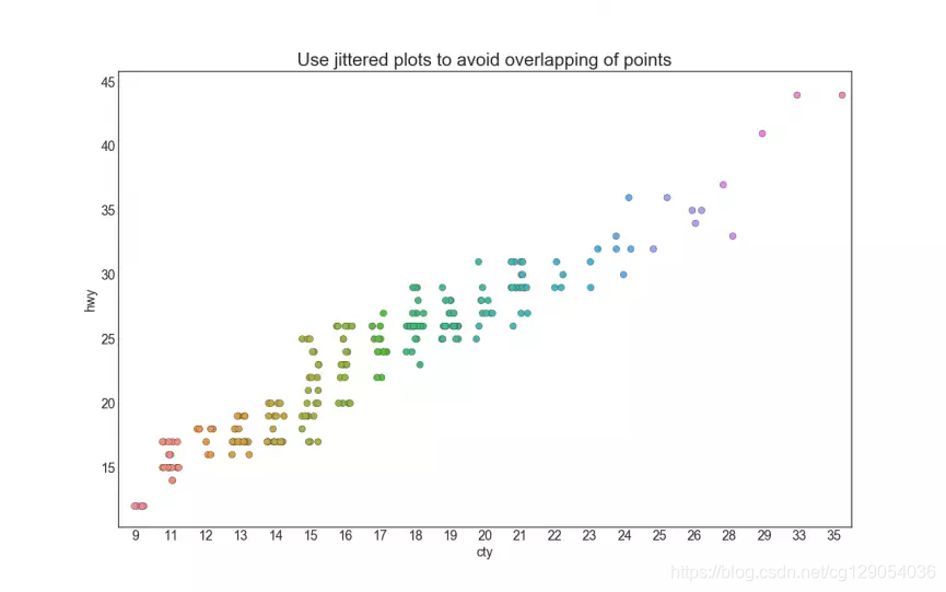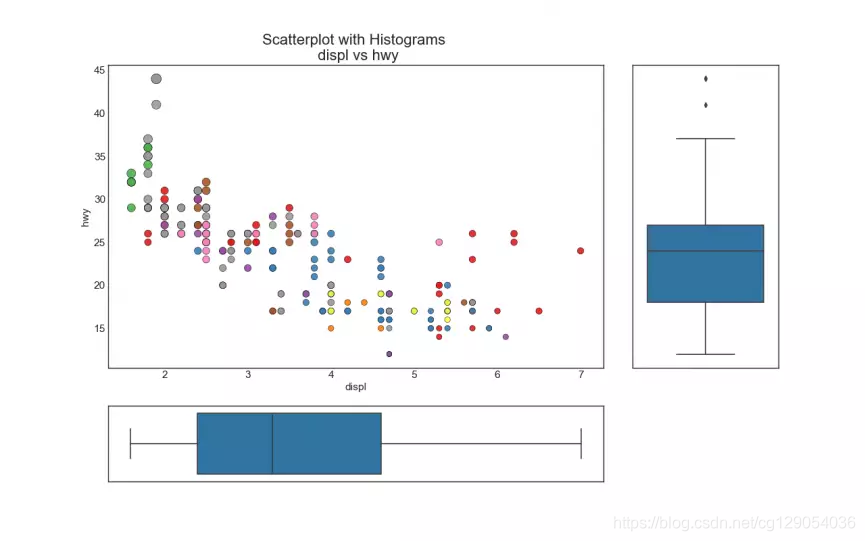 散点图是研究两个变量之间最基本和经典的关系图。如果数据中有多个不同的组,则可能需要以不同的颜色显示每个组。在matplotlib中,可以使用plt.scatterplot()。