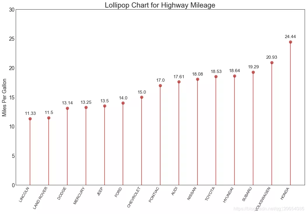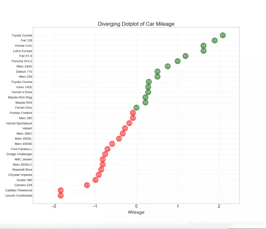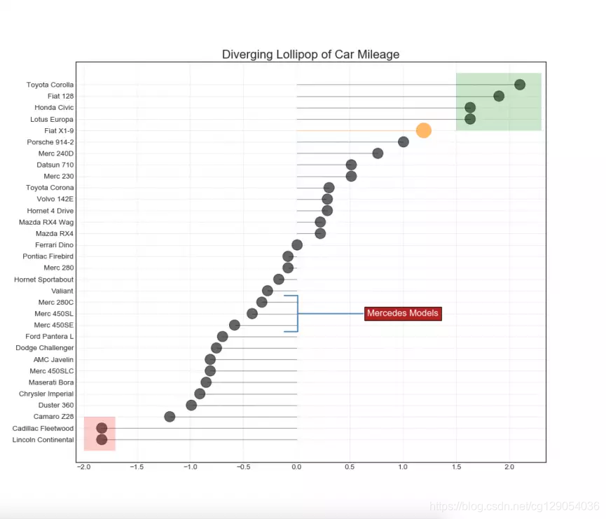 13. Diverging Lollipop Chart with Markers(带标记的发散型棒棒糖图)
