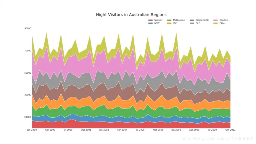 堆积面积图可以直观地显示多个时间序列的贡献程度,因此可以轻松地相互比较。