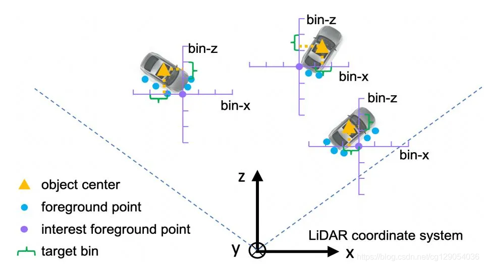 bin的执行方式为:先根据前景点的分割信息粗分其所属的箱体;再在箱体内部对其做回归,得到箱体参数作为预测框;最后对预测框做NMS(Non-Max Suppress,非极大值抑制),得到最终预测候选框。