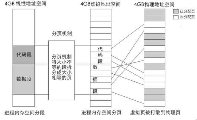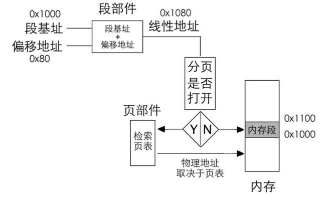 分页机制要建立在分段机制的基础上,也就是说,段部件的工作依然免不了,所以,分页只能是在分段之后进行的,其过程如图