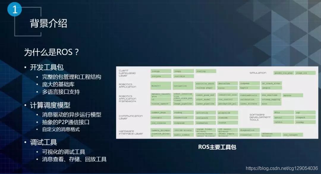 上图是一个ROS的基本框架,自动驾驶底层通信框架选择ROS,主要有三个方面的原因: