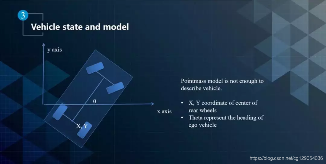 对于汽车而言,质点模型是远远不够的,无人车是前轮转向的车,前后位置的变化是不一样的,那么怎么去描述这种不一样呢?首先从刚体角度考虑,二维平面里的刚体涉及到和
