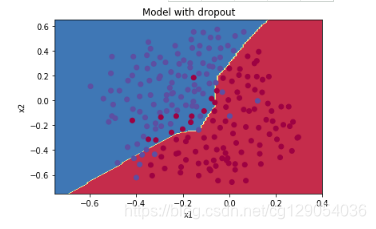 **What you should remember about dropout:** - Dropout is a regularization technique. - You only use dropout during training. Don't use dropout (randomly eliminate nodes) during test time. - Apply dropout both during forward and backward propagation. - During training time, divide each dropout layer by keep_prob to keep the same expected value for the activations. For example, if keep_prob is 0.5, then we will on average shut down half the nodes, so the output will be scaled by 0.5 since only the remaining half are contributing to the solution. Dividing by 0.5 is equivalent to multiplying by 2. Hence, the output now has the same expected value. You can check that this works even when keep_prob is other values than 0.5.