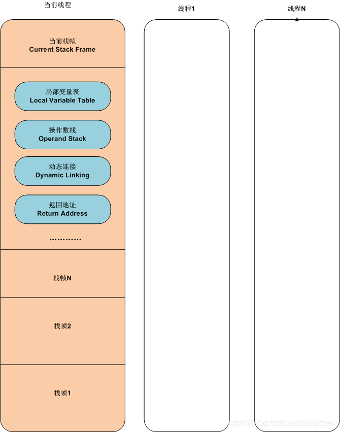 每一个方法从调用直至执行完成的过程,就对应着一个栈帧在虚拟机栈中出栈入栈的过程。