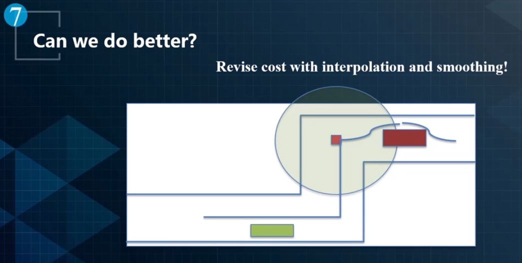 那么,上述介绍的搜索技术离自动驾驶运动规划还差多少?首先是在部分观察空间的动态障碍物,规划模块怎么处理动态障碍物是关键并且是有难度的。其次是自动驾驶汽车能否按照规划的行驶,可能需要一个动态模型。第三还缺少了遵守交通规则,它是道路安全的基本保证,将交通规则融入规划也是一个难点。第四是实时计算,目前来说百度要求规划模块运转周期是100毫秒。