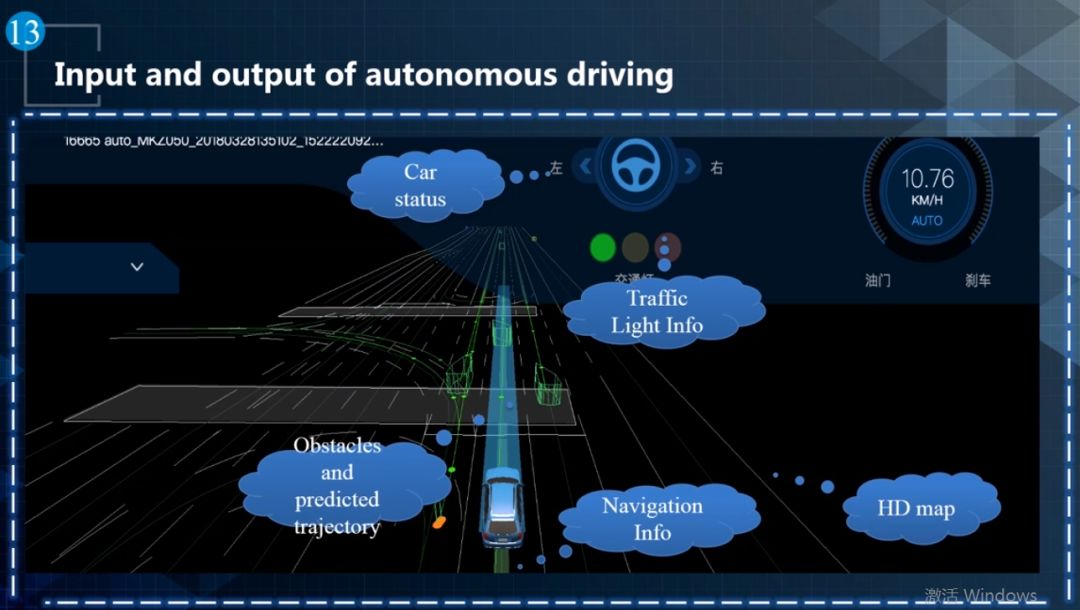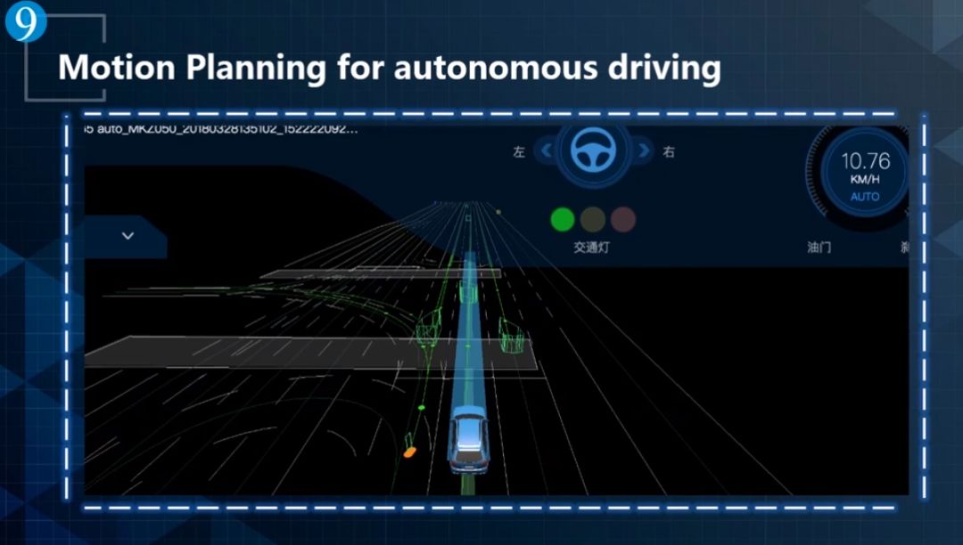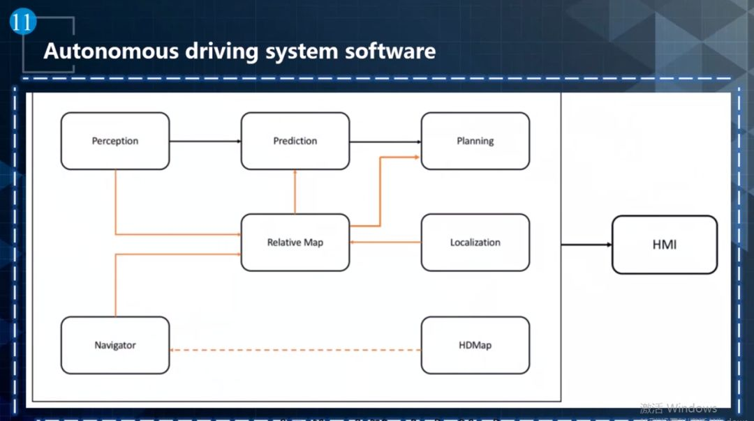 无人驾驶系统软件包括定位、感知、预测、运动规划和控制等。定位就是知道汽车在哪里。感知即是对周围环境信息的获取。预测就是感知到的障碍物的行进意图,例如旁边有无人超车。运动规划是在知道这些信息后,告知汽车如何运动。控制模块就是得到指令之后如何控制汽车。
