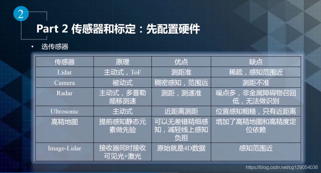 本节主要介绍无人车感知系统硬件的搭建,重点讲述传感器的选择和标定。目前,无人车中使用的传感器主要有激光雷达Lidar,相机和毫米波雷达Radar。