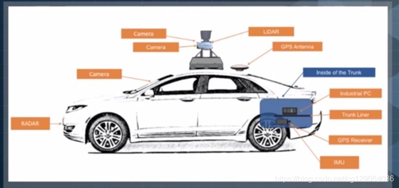 上图给出的是自动驾驶汽车的传感器安装示意图。传感器的安装对于后续步骤至关重用,需要科学、合理的安装。