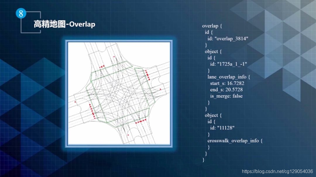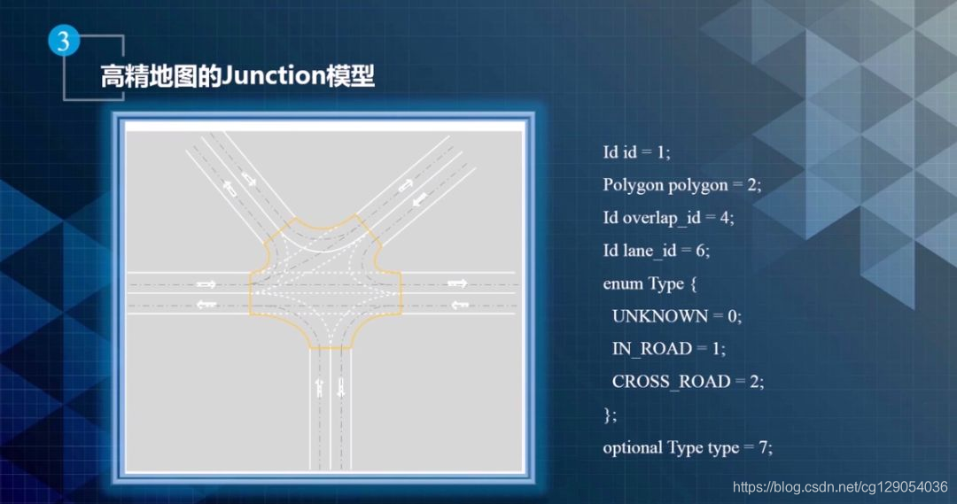 路口表述:路口分为真实路口和十字路口。在实践过程中,发现除了真实路口之外,在车道数变化的时候,比如从两车道变到三车道,需要感知周围有没有车辆,在Apollo高精地图里面也把这种情况处理成一个路口。